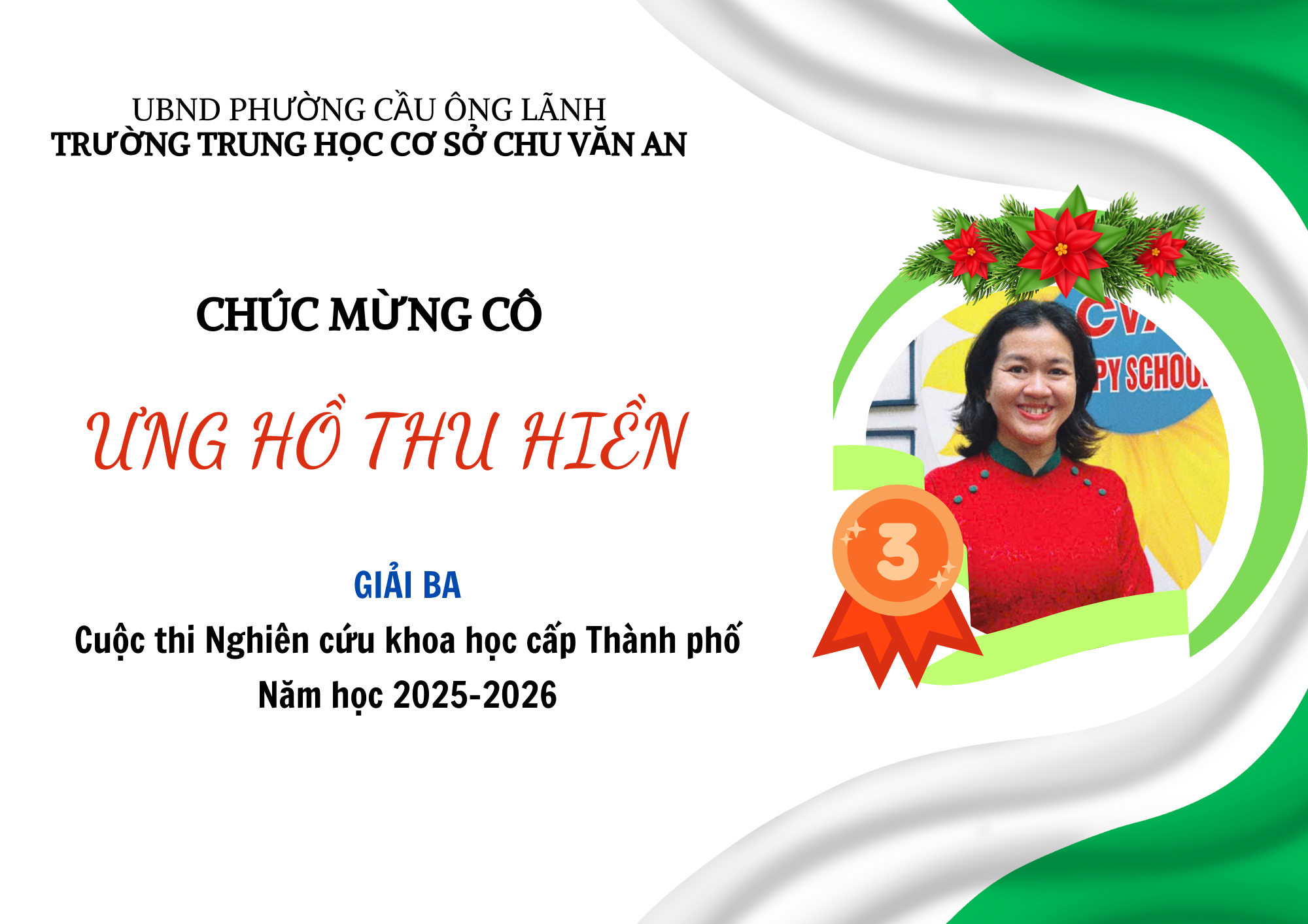 Thành tích của nhóm học sinh cùng sự hướng dẫn tận tâm của cô giáo Ưng Hồ Thu Hiền là niềm tự hào của nhà trường, đồng thời khẳng định tinh thần sáng tạo, chủ động và nhân văn của học sinh trong học tập và nghiên cứu khoa học.