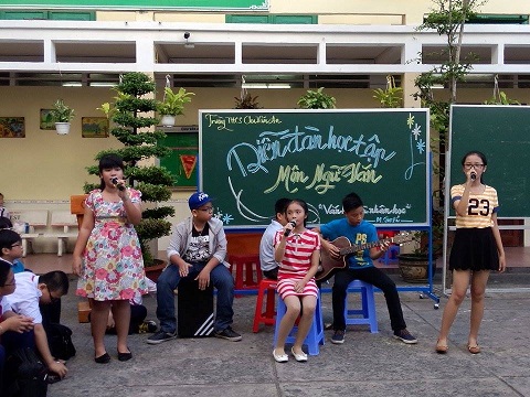 Mở đầu chương trình là bài hát "Thương ca tiếng Việt" do cô giáo trong tổ Ngữ văn trình bày.