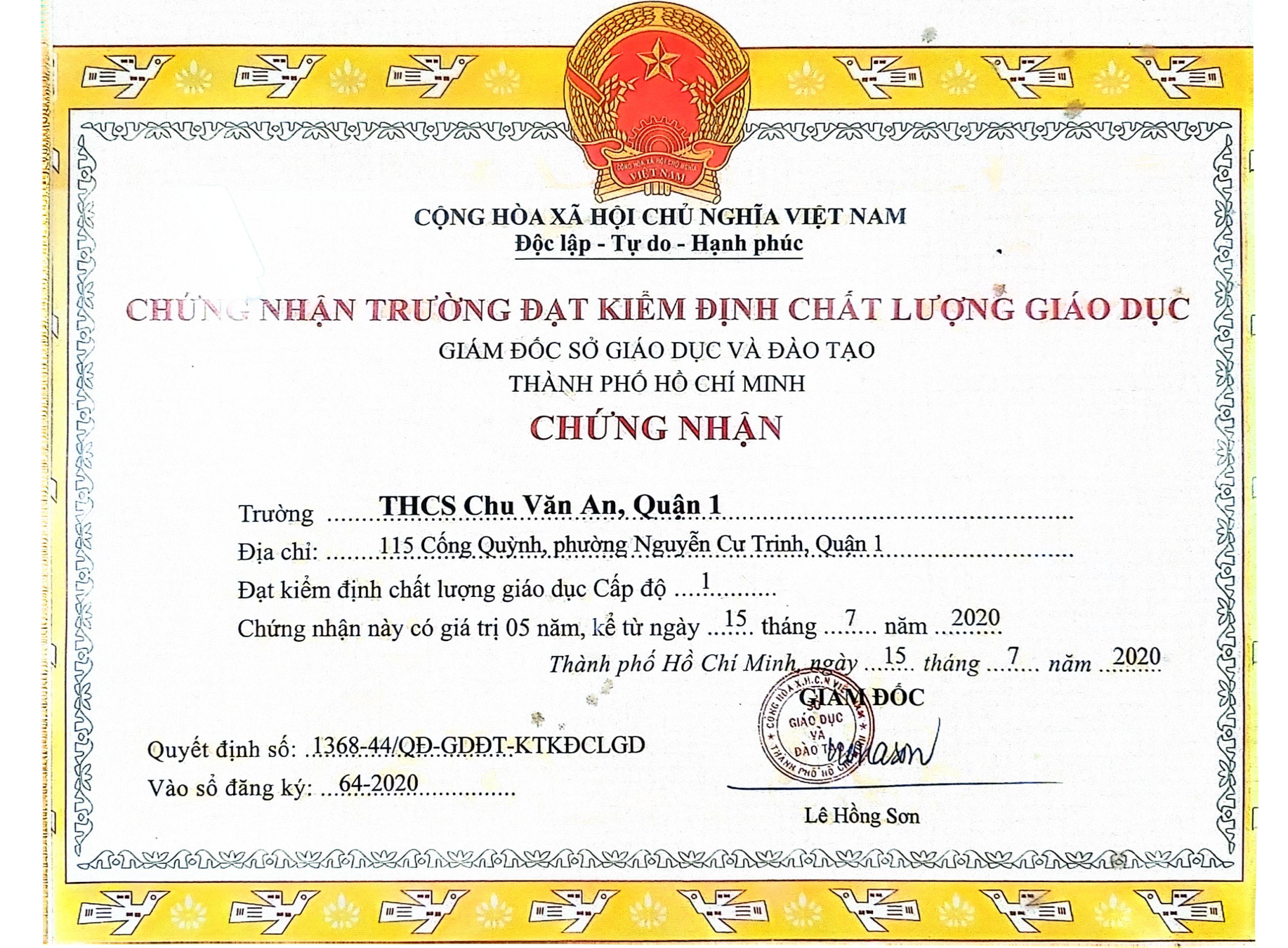 Quyết định công nhận đạt tiêu chuẩn chất lượng giáo dục năm học 2019-2020